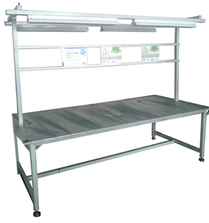 Maintenance workbench Pulling 1. Pull the whole bracket with 40*40 iron square pass 2. The H frame adopts 40*40 iron square Workbench 1. Workbench size is 2440×1220, using 18mm sandwich panel (high density) 2 Surface anti-static rubber, T-shaped plastic edge Lighting 1. Light bracket with integral bracket 40*40 iron square pass 2. Lamp: Bilateral light pipe with lampshade Four. Circuit 1. The trunking is formed by bending 1.2m cold plate, bilateral 2. Socket: three stable sockets V. Process frame Special aluminum profile with A4 hard rubber sleeve Control system system standard (independent open) Seven. Surface treatment The above is a bilateral production line, each station standard width 800MM |