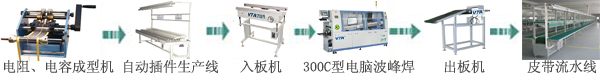 Automatic plug-in line Unilateral operation: 2.4-3.0m/segment Working face height: 750±15mm PCB width: 50-300mm continuously adjustable Conveyor chain: 3/8" imported high quality nylon plastic chain Drive system: WTW 60W speed motor Conveying speed: 0.5-1.8m/min Tripod light stand: 40*40 iron (aluminum square pass surface spray (computer gray) Body size (single unit): L3000*W600*H2000mm Power supply: single phase 220V Configuration: 1. Lighting: 30W single-bracket hood light distribution tube 2 2. Process kanban: 15X25 aluminum profiles, each with 6 300X400 transparent acrylic plates 3. Parts table: 1.5mm iron plate bending forming (two layers) |