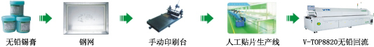 The artificial patch production line is mainly the patch mouth of the artificial simulation placement machine. The air pressure difference (reverse vacuum) generated by the artificial patch pen itself is used to directly suck the patch components from the material belt, and then manually The device is placed in the corresponding PADS position. Through the adjusted air pressure suction, the manual patch pen suction force is less than the sticking force of the solder paste (the patch glue), and the components are automatically placed on the corresponding PADS.