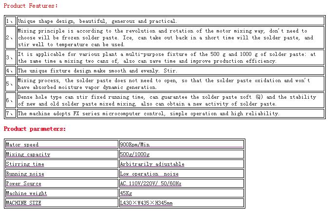 6. New and old solder paste can be mixed and stirred. The biggest advantage of closed stirring is the fixed running time, which also ensures the softness of solder paste. (Q property) stability and mixing of old and new solder paste, can also obtain a more active new solder paste.