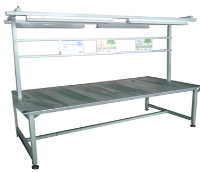 檢修工作臺(tái): 01 拉 身:1. 拉通整體支架采用40*40鐵方通 2. H架整體采用40*40鐵方通 02 工 作 臺(tái):1.工作臺(tái)尺寸為2440×1220,采用18mm 夾層板(高密度)2. 表面鋪防靜電膠皮,T型膠包邊 03 照 明:1. 燈架用整體支架40*40鐵方通 2. 燈管:雙邊光管帶燈罩 04 電 路:1. 線槽采用1.2m冷板折彎成型,雙邊 2. 插座:三位穩(wěn)不落插座 05 工藝卡架:采用專用鋁型材,配A4硬膠套 06 控制系統(tǒng):標(biāo)準(zhǔn)(獨(dú)立空開) 07 表面處理:噴粉電腦色 以上為雙邊生產(chǎn)線,每個(gè)工位標(biāo)準(zhǔn)寬度800MM |