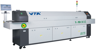 M系列經(jīng)濟(jì)型無鉛熱風(fēng)回流焊 產(chǎn)品特點(diǎn): 獨(dú)特先進(jìn)長(zhǎng)壽的加熱系統(tǒng) 加熱系統(tǒng)采用高效節(jié)能的瑞典110伏鎳?yán)影l(fā)熱管,輻射功率峰值波長(zhǎng)4UM,配合曲面反射罩,熱效率高,升溫度速度快,特制強(qiáng)制熱風(fēng)循環(huán)結(jié)構(gòu)系統(tǒng),使PCB及元器件受熱均勻,完全消除“陰影效應(yīng)”。 采用瑞士CARLO(佳樂)大電流固態(tài)繼電器無觸點(diǎn)輸出,安全、可靠,結(jié)合溫控器特有的模糊控制功能,一直監(jiān)視外界溫度及熱量值的變化,以最小脈沖控制發(fā)熱器件,快速作出反應(yīng),保證溫控精度±1℃,機(jī)內(nèi)溫度分布誤差在±2℃以內(nèi),長(zhǎng)度方向溫度分布符合IPC標(biāo)準(zhǔn)。 溫控采用進(jìn)口具模糊控制及PID智能運(yùn)算的精密控制器,通過PID智能運(yùn)算,自動(dòng)控制發(fā)熱量,模糊控制功能增加超調(diào)與抑制功能并快速響應(yīng)外部熱量變化的功能,最快速度響應(yīng)外部熱量的變化并通過內(nèi)部控制保證溫度更加平衡。 發(fā)熱管模塊設(shè)計(jì),方便維修拆裝。 采用臺(tái)灣三越高溫高速馬達(dá),運(yùn)風(fēng)平穩(wěn),震動(dòng)小,噪音小。 上爐體可整體開啟,便于爐膛清潔。 具溫度超差,,故障診斷,聲光報(bào)警 功率充沛,升溫迅速,從室溫至恒溫約15分鐘。 專用SSR散熱器,散熱效率大幅度提高,有效地延長(zhǎng)其使用壽命 采用耐高溫保護(hù)系統(tǒng),爐膛均采用特殊材料制作,適合于無鉛焊接,焊接區(qū)配備松香助焊劑回收系統(tǒng),保護(hù)環(huán)境。 可靠平穩(wěn)的傳輸系統(tǒng) 傳動(dòng)系統(tǒng)采用臺(tái)灣STK無級(jí)變速馬達(dá)、電調(diào)帶線速無級(jí)調(diào)速器,配合1:150的STK渦輪減速器,運(yùn)行平穩(wěn),速度200-1800mm/min 無級(jí)可調(diào),并有準(zhǔn)確的數(shù)字線速度指示。 采用獨(dú)立滾輪結(jié)構(gòu)及托平支撐,結(jié)合配套的不銹鋼網(wǎng)帶,運(yùn)行平穩(wěn),速度精確可達(dá)±20mm/min; 專用不銹鋼乙字網(wǎng)帶,耐用耐磨。長(zhǎng)時(shí)間使用不輕易變型。 |