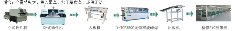 V-TOP350C無鉛波峰焊 機體線型外觀設(shè)計,采用噴塑工藝,美觀大方,經(jīng)久耐用 三段獨立1.8米預(yù)熱區(qū),全熱風預(yù)熱,帶射燈補償裝置,使PCB獲得良好的焊接效果 專利壓鑄式鈦合金鏈爪,不粘錫,永不變形,壽命長 全程觀察窗,方便操作和維護 錫爐升降與進出,自動調(diào)與手工調(diào)結(jié)合。采用靠背式設(shè)計,防止誤操作損傷機器 配有冷卻模塊,溫度補償模塊,適合無鉛焊接和多種工藝要求 公司最新發(fā)明的超平穩(wěn),超高濾波源發(fā)生器,大幅削弱了流道內(nèi)部錫流震蕩及紊流的產(chǎn)生,錫波平穩(wěn),氧化量大幅降低,維護簡單 傳動機構(gòu)采用精密模塊化設(shè)計,傳動準確,壽命長,易保養(yǎng) 松香噴霧裝置可拉出,并可拆卸,便于清潔維護 隔離式噴霧裝置,助焊劑煙霧從專用風道排出 強大參數(shù)庫功能,各類PCB工藝參數(shù)可按需調(diào)用操作 采用專業(yè)工業(yè)電腦控制系統(tǒng),確保系統(tǒng)具有可靠性和穩(wěn)定性 可按用戶設(shè)定的日期、時間及溫控參數(shù)進行自動開關(guān)機 系統(tǒng)故障自我診斷,故障原因自動顯示,故障排除方法隨時查詢 加熱溫度采用PID閉環(huán)控制,溫控穩(wěn)定可靠。 閉環(huán)式自動跟蹤噴霧系統(tǒng),噴霧寬度和噴霧時間自動調(diào)節(jié),并可按需設(shè)置提前和延長噴霧時間 過板自動起波,最大限度減少錫氧化量 運輸系統(tǒng)采用離合器限力+限流器雙重保護 短路及過流保護系統(tǒng) 運輸系統(tǒng)閉環(huán)控制。無級調(diào)速,精確控制PCB預(yù)熱與焊接時間。 工業(yè)電腦控制系統(tǒng)雙波峰焊接裝置,除兼容一貫的機器自動化性能外更采用流線型機體設(shè)計,簡單便捷的電腦視窗系統(tǒng),將自動化生產(chǎn)及管理紀錄提升至更高層次 |