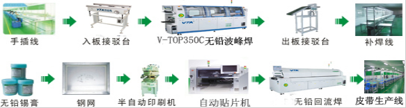 頂大型V-TOP8820無鉛回流焊 采用進(jìn)口加熱部件,溫度均勻,熱補(bǔ)償效率高,適合CSP,BGA元件的焊接; 專用風(fēng)輪設(shè)計,換氣量大,風(fēng)速穩(wěn)定; 各溫區(qū)采用強(qiáng)制獨(dú)立循環(huán),獨(dú)立PID控制,上下獨(dú)立加熱方式,使?fàn)t腔溫度準(zhǔn)確,均勻,熱容量大: 升溫快,從室溫到工作溫度≦30分鐘; 進(jìn)口優(yōu)質(zhì)高溫高速馬達(dá)運(yùn)風(fēng)平穩(wěn),振動小,噪音小; 爐體采用雙氣缸(電動推桿)頂升裝置,安全可靠; 鏈條、網(wǎng)帶同步等速運(yùn)輸,采用變頻精確調(diào)速; 特制優(yōu)質(zhì)鋁合金導(dǎo)軌設(shè)計,變形小,鏈條自動加油裝置; UPS斷電保護(hù)功能,保證斷電后PCB板正常輸出,不受損壞; 強(qiáng)大的軟件功能,對PCB板在線監(jiān)控測溫,并隨時對數(shù)據(jù)曲線進(jìn)行分析,儲存和打印; 工業(yè)控制PC機(jī)與PLC通訊采用MODBUS協(xié)議,工作穩(wěn)定,杜絕死機(jī)現(xiàn)象; 自動監(jiān)測,顯示設(shè)備工作狀態(tài),可做到隨時修正參數(shù); 特殊專利爐膽設(shè)計,保溫性好,耗電量達(dá)同行業(yè)最低; 專利導(dǎo)軌高溫不變形,三絲桿同步調(diào)寬結(jié)構(gòu),有效保證導(dǎo)軌平行,防止掉板,卡板的發(fā)生、免清洗,易調(diào)節(jié)。自動和手動皆可進(jìn)行調(diào)寬操作。 標(biāo)配鏈條、網(wǎng)鏈同步等速并行運(yùn)輸,可加工單面、雙面PCB板,可選雙導(dǎo)軌運(yùn)輸系統(tǒng)。 自動調(diào)寬系統(tǒng)采用閉環(huán)PID控制,可根據(jù)電腦輸入的參數(shù)自動調(diào)到需要的寬度,精確度可達(dá)0.2mm。 各溫區(qū)因采用模塊化設(shè)計,熱風(fēng)馬達(dá)和發(fā)熱絲保養(yǎng)和維修方便。 強(qiáng)制冷風(fēng)冷卻,冷風(fēng)交換快,風(fēng)速均勻,斜率可變頻控制,錫點圓滑光亮;(充氮機(jī)選配) 氮?dú)饬髁坑嬁呻S時監(jiān)控氮?dú)饬髁壳闆r;(充氮機(jī)選配) 快速抽氧充氮,獲得高純度氮?dú)?span>;(充氮機(jī)選配) 垂直式防泄露技術(shù),防止氮?dú)庑孤?span>;(充氮機(jī)選配) |