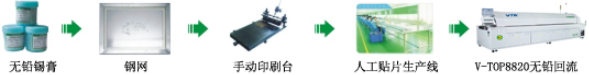 人工貼片生產線 人工貼片生產線主要是人工模擬貼片機的貼片嘴,通過人工貼片筆自身產生的空氣壓強差(反向真空),將貼片元器件從料帶直接吸起,然后通過人工將元器件放置于相應的PADS位上,通過已調整的氣壓吸力,人工貼片筆吸著力小于錫漿(貼片膠)的粘著力,元器件自動放置在相應的PADS上.