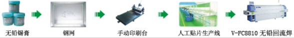 人工貼片生產(chǎn)線 人工貼片生產(chǎn)線主要是人工模擬貼片機(jī)的貼片嘴,通過(guò)人工貼片筆自身產(chǎn)生的空氣壓強(qiáng)差(反向真空),將貼片元器件從料帶直接吸起,然后通過(guò)人工將元器件放置于相應(yīng)的PADS位上,通過(guò)已調(diào)整的氣壓吸力,人工貼片筆吸著力小于錫漿(貼片膠)的粘著力,元器件自動(dòng)放置在相應(yīng)的PADS上.