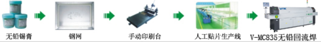 無鉛錫膏產(chǎn)品特性: 適應長時間印刷(6小時以上)。 高強度的抗氧化能力。 具有良好的粘性和觸變性,且粘性時間極長,不易塌陷。 具有極高的絕緣電阻,無需清洗。 焊后不易產(chǎn)生微小的焊錫球。 V系列免清洗無鉛焊膏是依照IPC及JIS等國際標準為適應未來環(huán)保要求而研發(fā)近似有鉛工藝的焊錫膏,采用全新的松香樹脂和復合抗氧化技術,選用低氧化度的球形焊料合金粉末和化學穩(wěn)定性極強的膏狀環(huán)保型助焊劑煉制而成。 適用于電子裝配工藝SMT生產(chǎn)的各種精密焊接。合金系列免清洗型無鉛焊錫膏