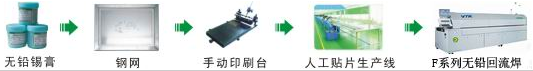 人工貼片生產(chǎn)線 人工貼片生產(chǎn)線主要是人工模擬貼片機的貼片嘴,通過人工貼片筆自身產(chǎn)生的空氣壓強差(反向真空),將貼片元器件從料帶直接吸起,然后通過人工將元器件放置于相應(yīng)的PADS位上,通過已調(diào)整的氣壓吸力,人工貼片筆吸著力小于錫漿(貼片膠)的粘著力,元器件自動放置在相應(yīng)的PADS上. 回流焊 重量:45kg